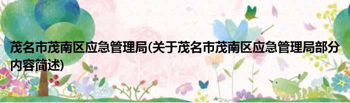 茂名市茂南区应急管理局(关于茂名市茂南区应急管理局部分内容简述)