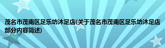 茂名市茂南区足乐坊沐足店(关于茂名市茂南区足乐坊沐足店部分内容简述)
