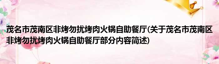 茂名市茂南区非烤勿扰烤肉火锅自助餐厅(关于茂名市茂南区非烤勿扰烤肉火锅自助餐厅部分内容简述)