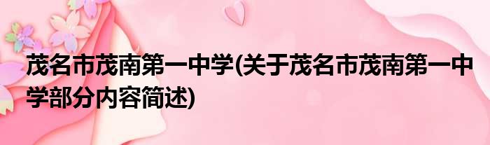 茂名市茂南第一中学(关于茂名市茂南第一中学部分内容简述)