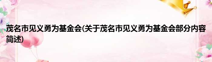 茂名市见义勇为基金会(关于茂名市见义勇为基金会部分内容简述)