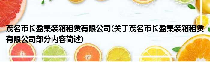 茂名市长盈集装箱租赁有限公司(关于茂名市长盈集装箱租赁有限公司部分内容简述)