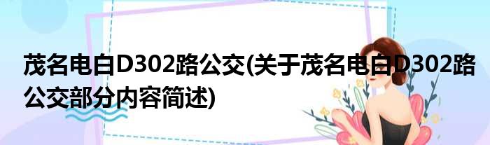 茂名电白D302路公交(关于茂名电白D302路公交部分内容简述)