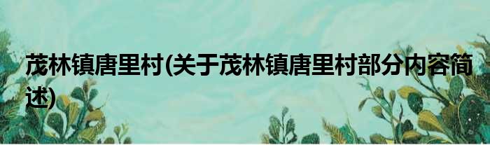 茂林镇唐里村(关于茂林镇唐里村部分内容简述)