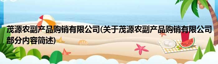 茂源农副产品购销有限公司(关于茂源农副产品购销有限公司部分内容简述)