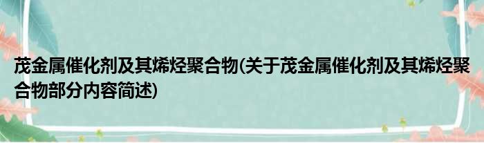茂金属催化剂及其烯烃聚合物(关于茂金属催化剂及其烯烃聚合物部分内容简述)
