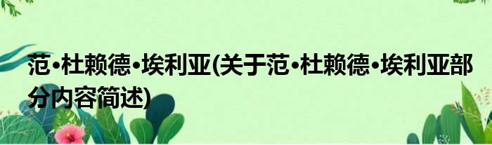 大家好,今天小方来说说一篇关于范·杜赖德·埃利亚,关于范·杜赖德·埃利亚部分内容简述的文章,那么现在就为大家来简单介绍下,希望对各位小伙伴们有所帮助。