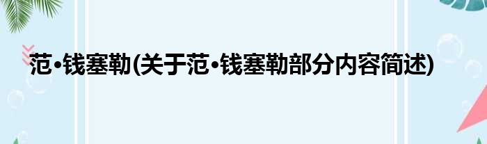 范·钱塞勒(关于范·钱塞勒部分内容简述)