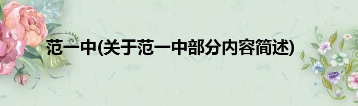 大家好,今天小方来说说一篇关于范一中,关于范一中部分内容简述的文章,那么现在就为大家来简单介绍下,希望对各位小伙伴们有所帮助。