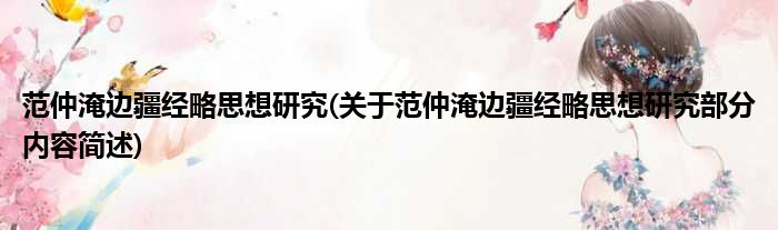 范仲淹边疆经略思想研究(关于范仲淹边疆经略思想研究部分内容简述)