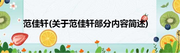 大家好,今天小方来说说一篇关于范佳轩,关于范佳轩部分内容简述的文章,那么现在就为大家来简单介绍下,希望对各位小伙伴们有所帮助。