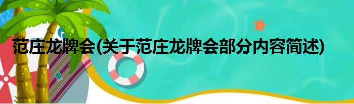 范庄龙牌会(关于范庄龙牌会部分内容简述)