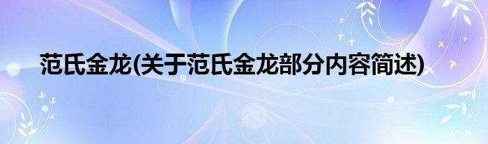 大家好,今天小方来说说一篇关于范氏金龙,关于范氏金龙部分内容简述的文章,那么现在就为大家来简单介绍下,希望对各位小伙伴们有所帮助。