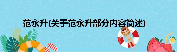 大家好,今天小方来说说一篇关于范永升,关于范永升部分内容简述的文章,那么现在就为大家来简单介绍下,希望对各位小伙伴们有所帮助。