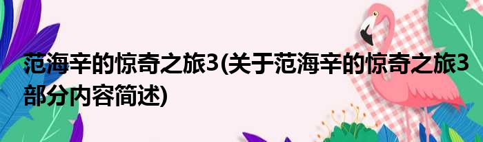 范海辛的惊奇之旅3(关于范海辛的惊奇之旅3部分内容简述)