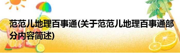 范范儿地理百事通(关于范范儿地理百事通部分内容简述)