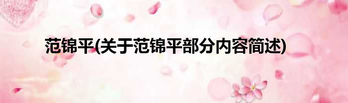 大家好,今天小方来说说一篇关于范锦平,关于范锦平部分内容简述的文章,那么现在就为大家来简单介绍下,希望对各位小伙伴们有所帮助。