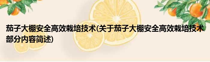 茄子大棚安全高效栽培技术(关于茄子大棚安全高效栽培技术部分内容简述)