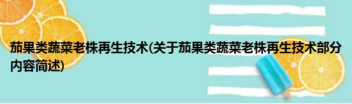 茄果类蔬菜老株再生技术(关于茄果类蔬菜老株再生技术部分内容简述)