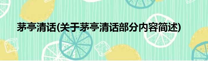 大家好,今天小方来说说一篇关于茅亭清话,关于茅亭清话部分内容简述的文章,那么现在就为大家来简单介绍下,希望对各位小伙伴们有所帮助。