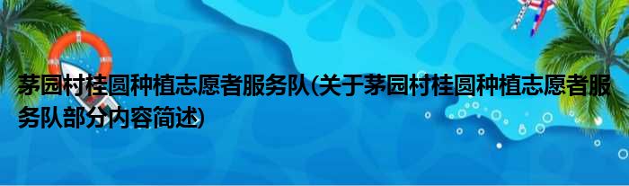 茅园村桂圆种植志愿者服务队(关于茅园村桂圆种植志愿者服务队部分内容简述)