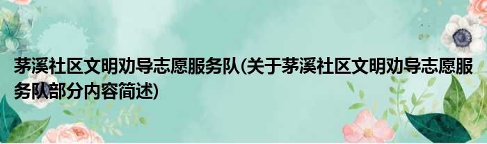 茅溪社区文明劝导志愿服务队(关于茅溪社区文明劝导志愿服务队部分内容简述)