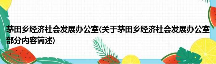 茅田乡经济社会发展办公室(关于茅田乡经济社会发展办公室部分内容简述)