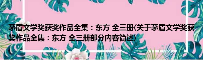 茅盾文学奖获奖作品全集:东方 全三册(关于茅盾文学奖获奖作品全集:东方 全三册部分内容简述)