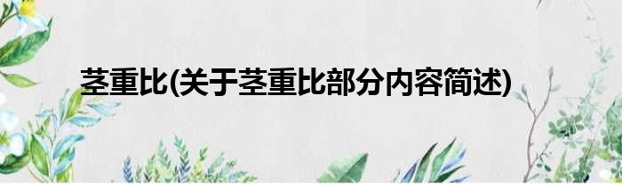 大家好,今天小方来说说一篇关于茎重比,关于茎重比部分内容简述的文章,那么现在就为大家来简单介绍下,希望对各位小伙伴们有所帮助。