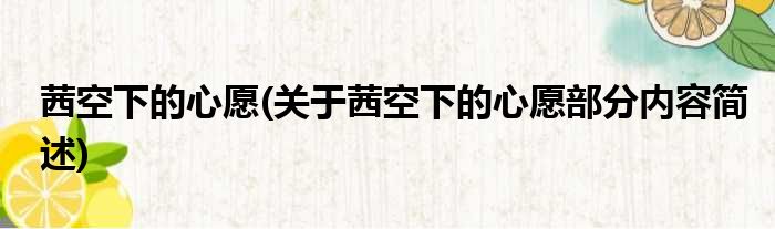 茜空下的心愿(关于茜空下的心愿部分内容简述)