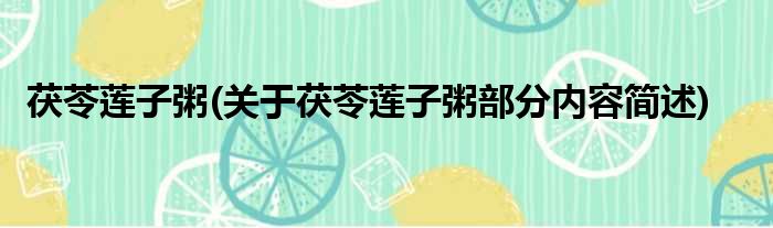 茯苓莲子粥(关于茯苓莲子粥部分内容简述)