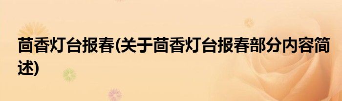 茴香灯台报春(关于茴香灯台报春部分内容简述)