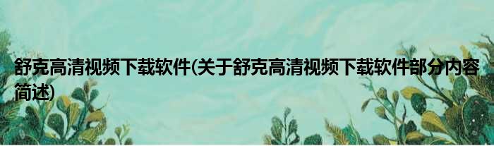 舒克高清视频下载软件(关于舒克高清视频下载软件部分内容简述)
