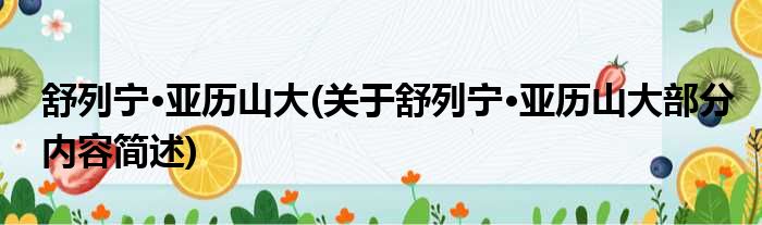 大家好,今天小方来说说一篇关于舒列宁·亚历山大,关于舒列宁·亚历山大部分内容简述的文章,那么现在就为大家来简单介绍下,希望对各位小伙伴们有所帮助。
