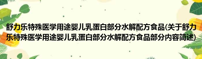 舒力乐特殊医学用途婴儿乳蛋白部分水解配方食品(关于舒力乐特殊医学用途婴儿乳蛋白部分水解配方食品部分内容简述)