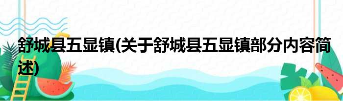 舒城县五显镇(关于舒城县五显镇部分内容简述)