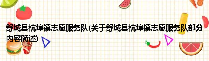 舒城县杭埠镇志愿服务队(关于舒城县杭埠镇志愿服务队部分内容简述)