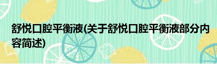舒悦口腔平衡液(关于舒悦口腔平衡液部分内容简述)