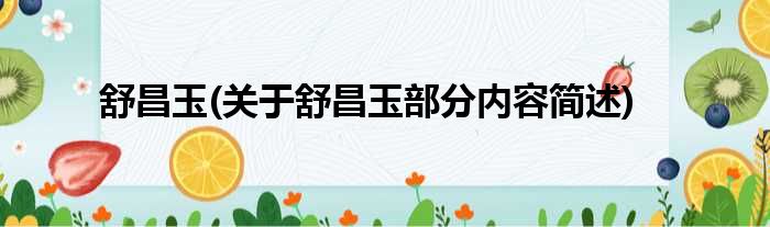 舒昌玉(关于舒昌玉部分内容简述)