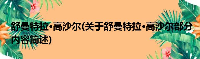 大家好,今天小方来说说一篇关于舒曼特拉·高沙尔,关于舒曼特拉·高沙尔部分内容简述的文章,那么现在就为大家来简单介绍下,希望对各位小伙伴们有所帮助。