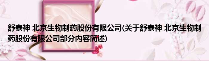 舒泰神 北京生物制药股份有限公司(关于舒泰神 北京生物制药股份有限公司部分内容简述)
