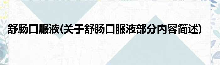 舒肠口服液(关于舒肠口服液部分内容简述)