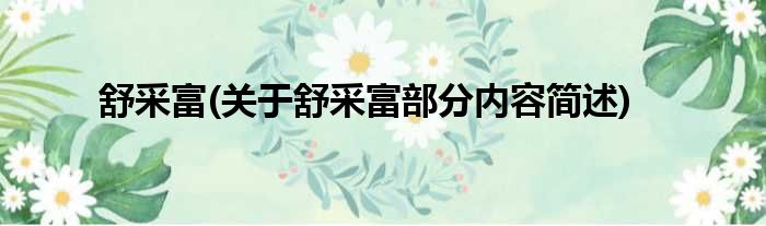 大家好,今天小方来说说一篇关于舒采富,关于舒采富部分内容简述的文章,那么现在就为大家来简单介绍下,希望对各位小伙伴们有所帮助。