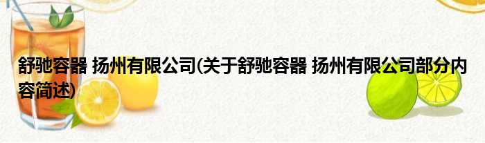 舒驰容器 扬州有限公司(关于舒驰容器 扬州有限公司部分内容简述)