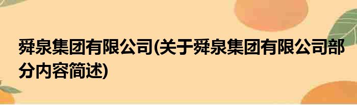 舜泉集团有限公司(关于舜泉集团有限公司部分内容简述)