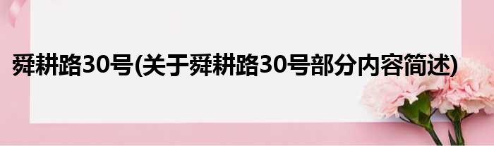 舜耕路30号(关于舜耕路30号部分内容简述)