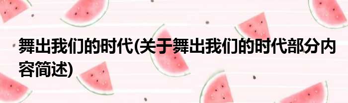 舞出我们的时代(关于舞出我们的时代部分内容简述)