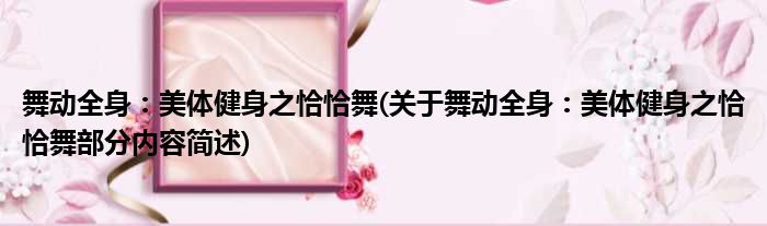 大家好,今天小方来说说一篇关于舞动全身:美体健身之恰恰舞,关于舞动全身:美体健身之恰恰舞部分内容简述的文章,那么现在就为大家来简单介绍下,希望对各位小伙伴们有所帮助。