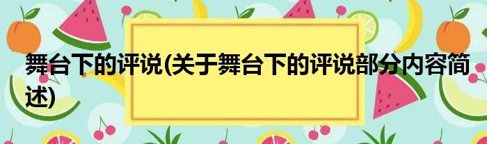 舞台下的评说(关于舞台下的评说部分内容简述)