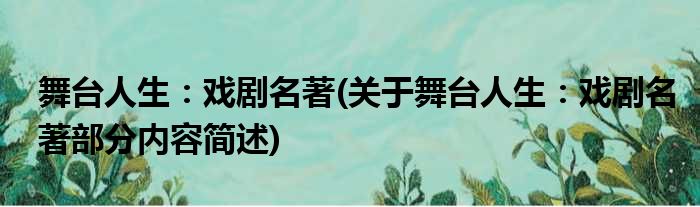 舞台人生:戏剧名著(关于舞台人生:戏剧名著部分内容简述)